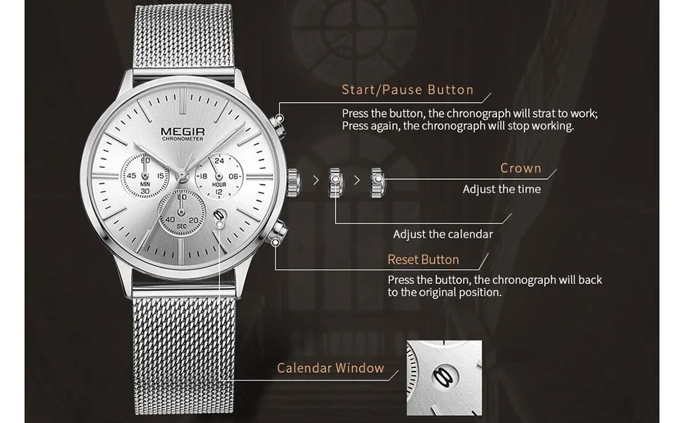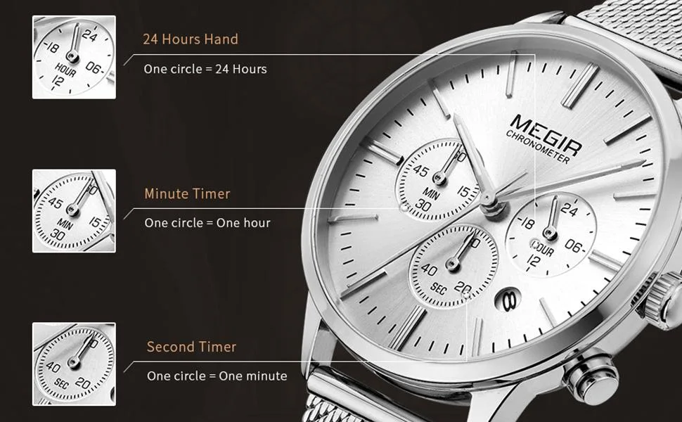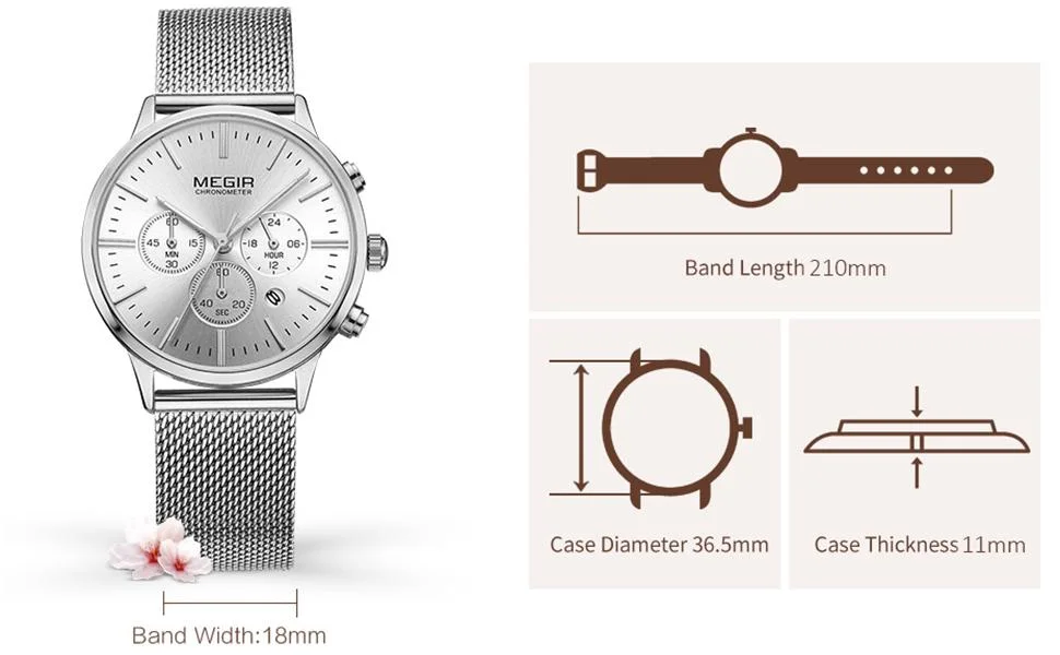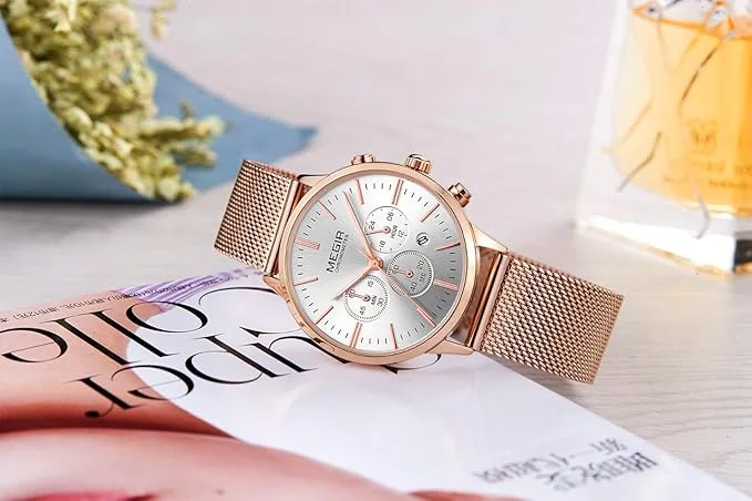MEGIR Montre Pour Femmes Design élégant et à la mode avec Acier Inoxydable
